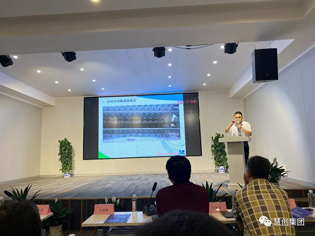 王國(guó)毫經(jīng)理正通過PPT路演展示的方式,闡述《慧創(chuàng)自動(dòng)化生產(chǎn)項(xiàng)目》這項(xiàng)創(chuàng)新創(chuàng)業(yè)項(xiàng)目。