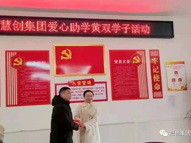 2021年12月29日上午,洞口縣芙蓉學校在學校報告廳舉行了2021年度“芙蓉基金”頒發儀式暨元旦聯誼活動。縣委、縣教育局、縣經開區、花古街道領導、慧創董事長鄧倩女士等一行共同參加了此次活動。在活動中,慧創董事長鄧倩女士為孩子們發放了“慧創獎學金”。