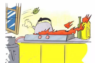 (四)油鍋起火不能用水撲救,關閉閥門,蓋上鍋蓋或用濕布覆蓋,還可以放入切好的蔬菜。